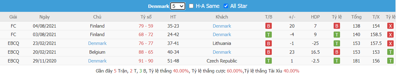 Denmark hoàn toàn không được đánh giá cao ở trận đấu tới khi đã toàn thua qua tổng số 2 chuyến hành quân đến chính sân nhà của Iceland ở 2 lượt đấu trước. Chính vì không có được lợi thế ra sân ngay trên sân nhà ở trận đấu tới nên dường như Denmark đã chẳng phải là sự lựa chọn hiệu quả dành cho giới đầu tư khi mà đội bóng này đã không thể mang lại được niềm vui cho người chơi về kèo theo TLCA trong tổng số 6 trận ra sân gần nhất.