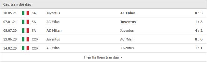 Thành tích đối đầu Juventus vs AC Milan