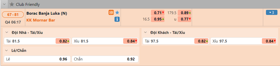 Bảng tỷ lệ kèo KK Borac Banja Luka vs KK Mornar Bar