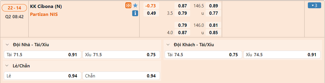 Bảng tỷ lệ kèo KK Cibona vs KK Partizan Beograd
