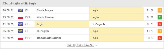 Thống kê phong độ gần đây Legia Warszawa vs Slavia Praha