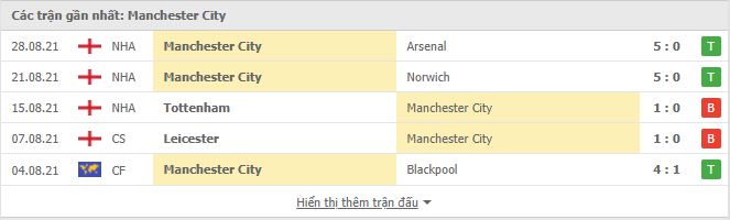 Thống kê phong độ gần đây Leicester vs Manchester City