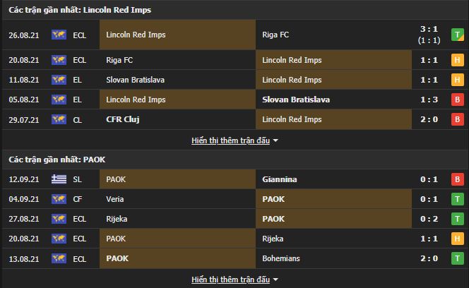 Phong độ gần đây Lincoln Red Imps vs PAOK: