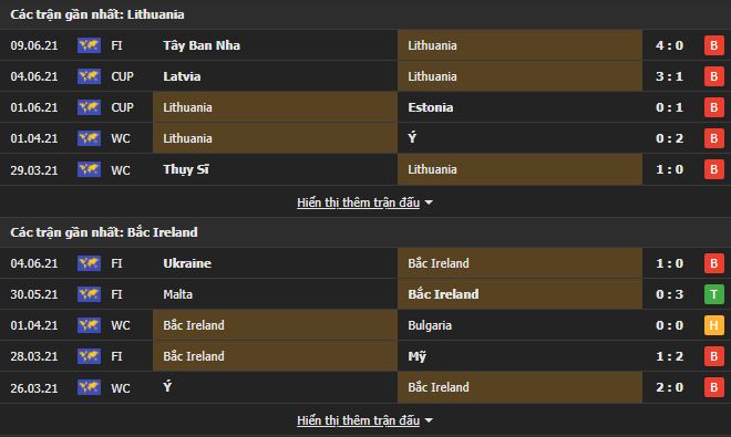 Phong độ gần đây Lithuania vs Bắc Ireland: