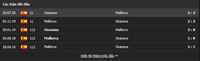 Thành tích đối đầu Mallorca vs Osasuna: