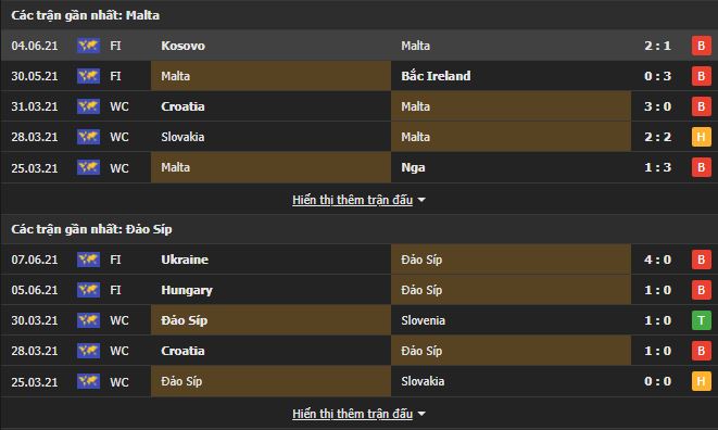 Ngoài ra, trong cả 2 lần chạm trán gần nhất giữa hai đội, chiến thắng chung cuộc đều gọi tên Cyprus. Đối với Cyprus, thực lực của họ cũng không đủ để nghĩ tới việc cạnh tranh tấm vé tham dự VCK nhưng việc họ giành được chiến thắng trước Malta được dự báo trước. Kèo châu Á, Cyprus chấp 1/2 và tài xỉu 2/2.5, chọn đội tuyển Cyprus và tài đặt kèo hợp lí hơn cả.