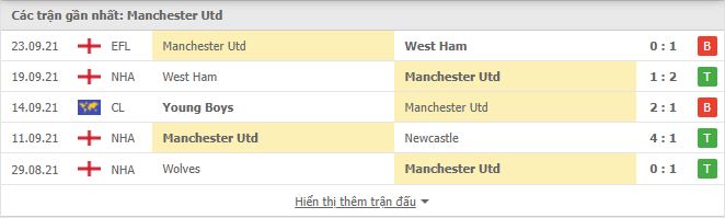 Thống kê phong độ gần đây Manchester United vs Aston Villa