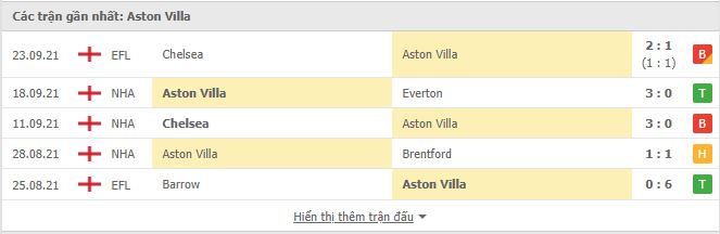 - Phong độ Aston Villa