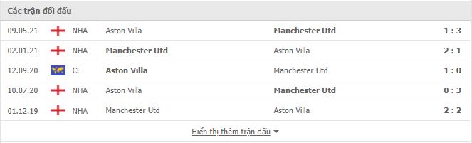 Thành tích đối đầu Manchester United vs Aston Villa