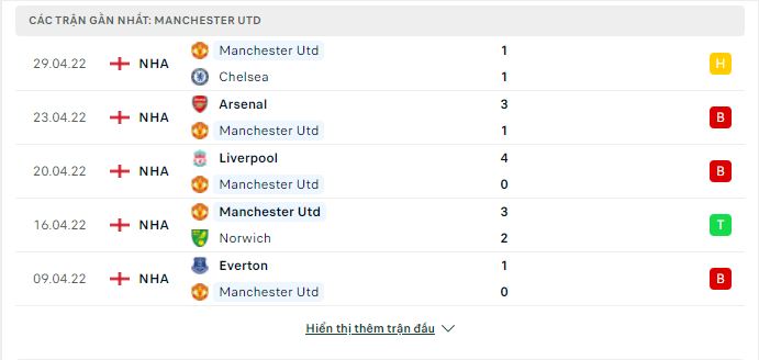 Thống kê phong độ gần đây Manchester United vs Brentford