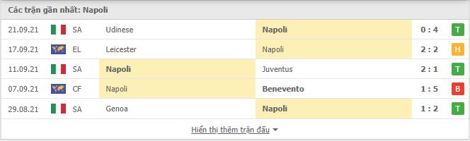 Thống kê phong độ gần đây Napoli vs Cagliari