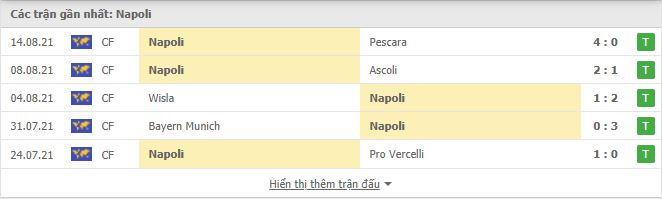 Thống kê phong độ gần đây Napoli vs Venezia