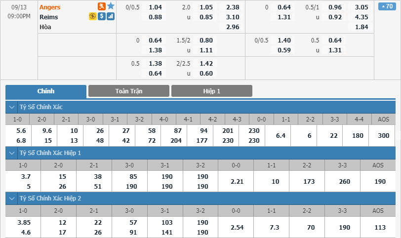 - Tỷ lệ kèo bóng đá Angers vs Reims