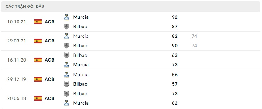 - Fulltime: Bilbao 75 - 74 Murcia ( Xỉu )