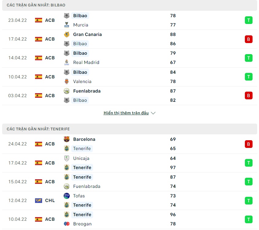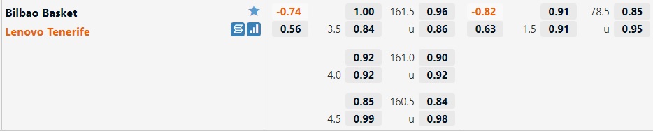 - Fulltime: Bilbao 77 - 74 Tenerife ( Xỉu )
