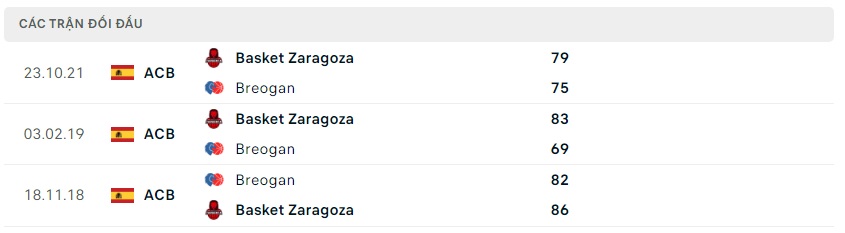 Lịch sử đối đầu Breogan Lugo vs Zaragoza