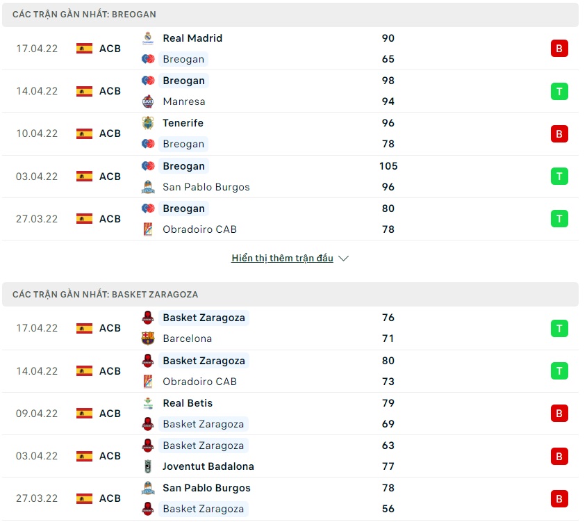 - Fulltime: Breogan Lugo 80 - 82 Zaragoza ( Tài )
