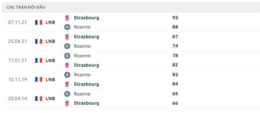 Lịch sử đối đầu Chorale Roanne vs Strasbourg