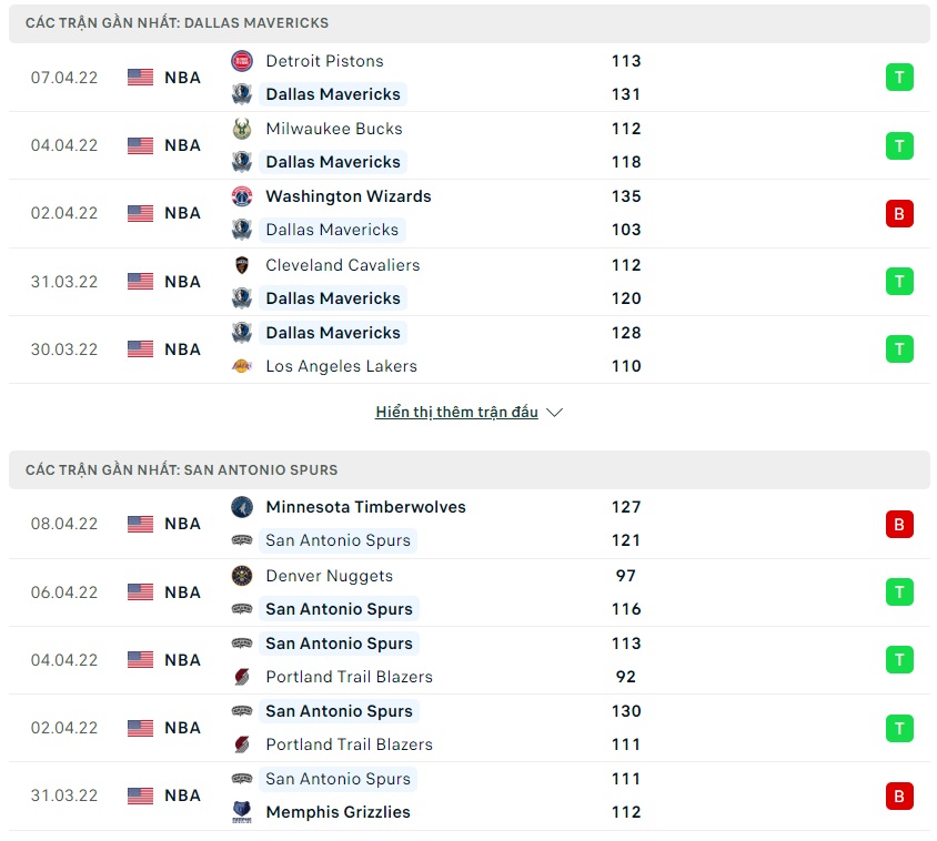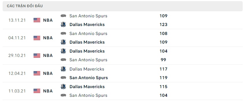 Phong độ gần đây Dallas Mavericks vs San Antonio Spurs