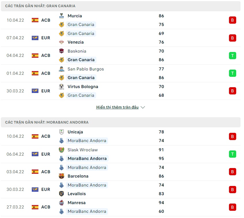 Bảng kèo Gran Canaria vs MoraBanc Andorra