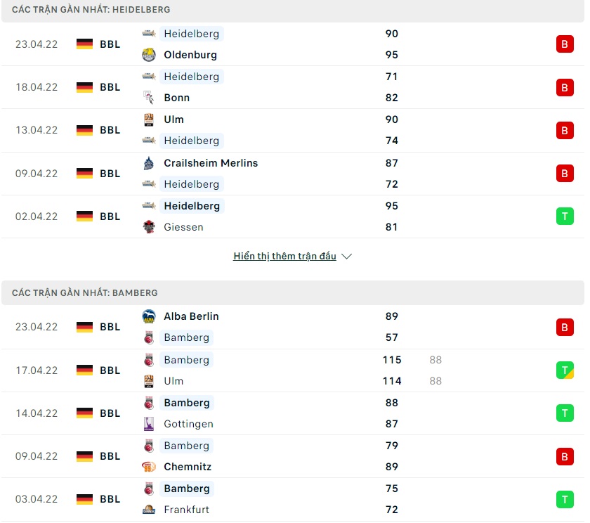 - Fulltime: Heidelberg 78 - 88 Bamberg ( Tài )