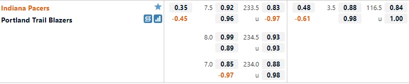 Bảng kèo Indiana Pacers vs Portland Trail Blazers