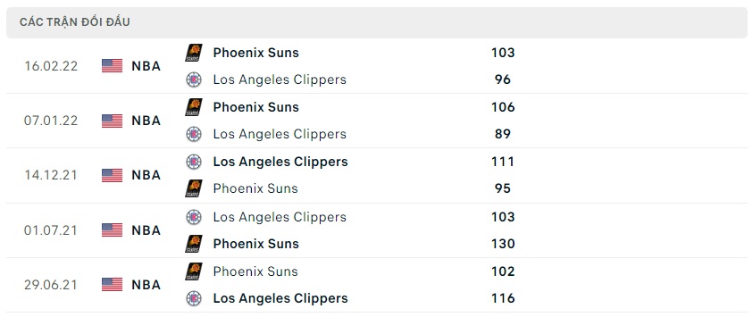 Lịch sử đối đầu Los Angeles Clippers vs Phoenix Suns