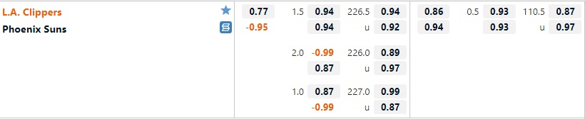 Bảng kèo Los Angeles Clippers vs Phoenix Suns