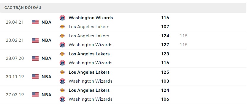 Los Angeles Lakers cùng thường xuyên phải nhận trái đắng trước Wizards trong những năm gần đây, với 6 thất bại trong 10 trận gần nhất. Cả 2 vẫn chưa có lần đụng độ nào kể từ đầu mùa và tình hình hiện tại đang không có thấy sự nhỉnh hơn từ bất cứ đại diện nào. Lakers đã thua trong 2 trận đấu gần nhất trước đối thủ diễn ra trong năm ngoái, với cách biệt điểm số không lớn nhưng họ luôn được đánh giá là đội cửa trên thời điểm đó. Chấn thương dài hạn của Anthony Davis trong phần còn lại của mùa giải sẽ khiến Showtime tiếp tục phải đối mặt với một chuỗi trận đáng quên trước mắt. Sức tấn công của đội bóng này hiện tại phụ thuộc hoàn toàn vào màn trình diễn của 2 ngôi sao lớn còn lại trong đội hình là Westbrook và LeBron James. Cả 2 cũng đã có những màn trình diễn ấn tượng trước Rockets vừa rồi qua, đặc biệt là cú Triple Double của The Kings. Washington Wizards thì vẫn đau đầu với hàng công, khi Bradley Beal vẫn chưa thể quay trở lại. Khả năng tấn công của đội bóng này hiện đang phân bổ đồng đều cho những cá nhân như Kuzma, Caldwell-Pope, họ vẫn cho thấy những tiềm năng trước một đối thủ đang không có phong độ tốt như Lakers.