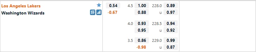 Bảng kèo Los Angeles Lakers vs Washington Wizards