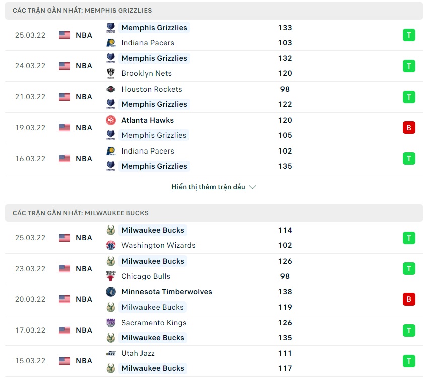 - Fulltime: Memphis Grizzlies 117 - 135 Milwaukee Bucks ( Tài )