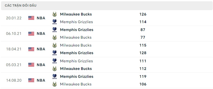 Lịch sử đối đầu Memphis Grizzlies vs Milwaukee Bucks