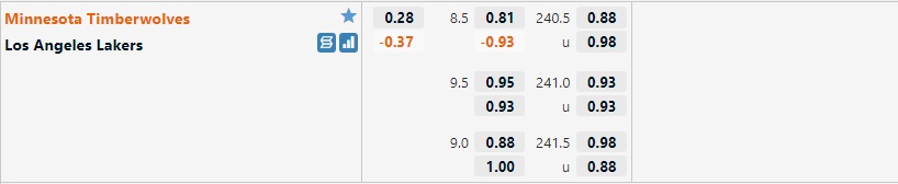 Bảng kèo Minnesota Timberwolves vs Los Angeles Lakers