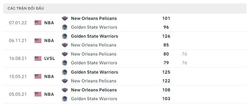 Lịch sử đối đầu New Orleans Pelicans vs Golden State Warriors