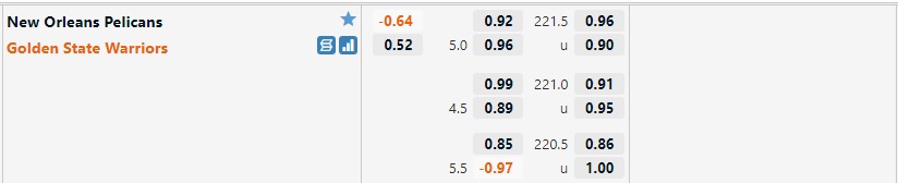 Bảng kèo New Orleans Pelicans vs Golden State Warriors