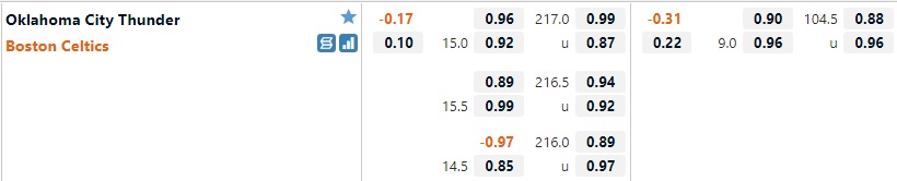 Bảng kèo Oklahoma City Thunder vs Boston Celtics