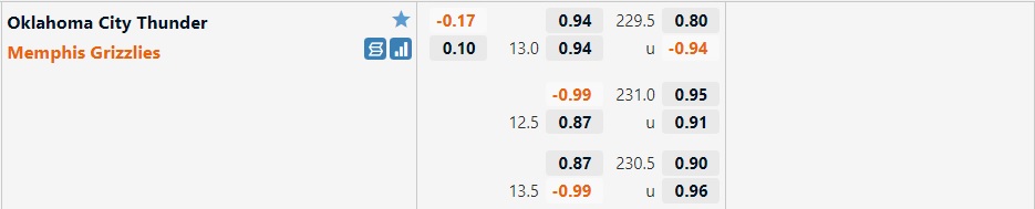 Bảng kèo Oklahoma City Thunder vs Memphis Grizzlies