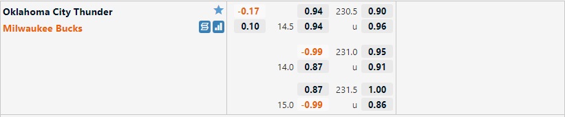 Bảng kèo Oklahoma City Thunder vs Milwaukee Bucks