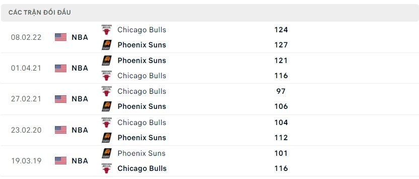 Lịch sử đối đầu Phoenix Suns vs Chicago Bulls