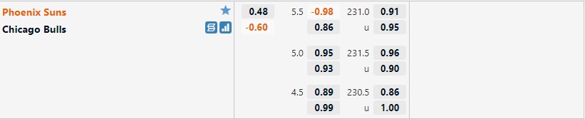 Phoenix Suns đang sở hữu khả năng ghi điểm tốt bậc nhất toàn NBA trong 10 vòng trở lại đây, với 119,6 điểm trung bình ghi được. Trong khi đó, mức điểm của Bulls đã có sự suy giảm với trung bình 109,1 mỗi trận. Nếu Phoenix Suns giành chiến thắng, có thể cuộc đụng độ này sẽ về kèo Xỉu khi mà mức điểm của đội khách có thể sẽ là dưới 110.