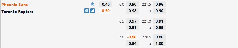 Bảng kèo Phoenix Suns vs Toronto Raptors