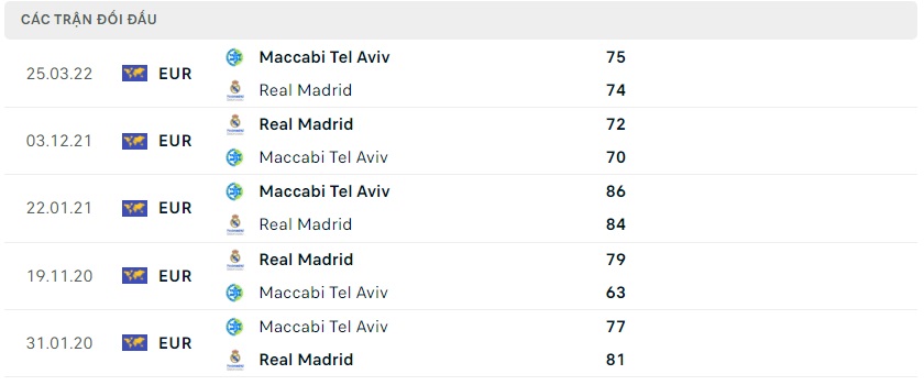 - Fulltime: Real Madrid 83 - 84 Maccabi Tel Aviv ( Tài )