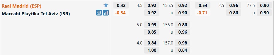 Bảng kèo Real Madrid vs Maccabi Tel Aviv