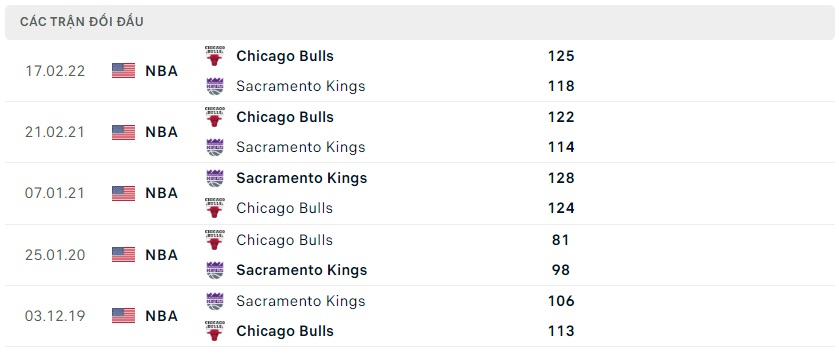 Lịch sử đối đầu Sacramento Kings vs Chicago Bulls