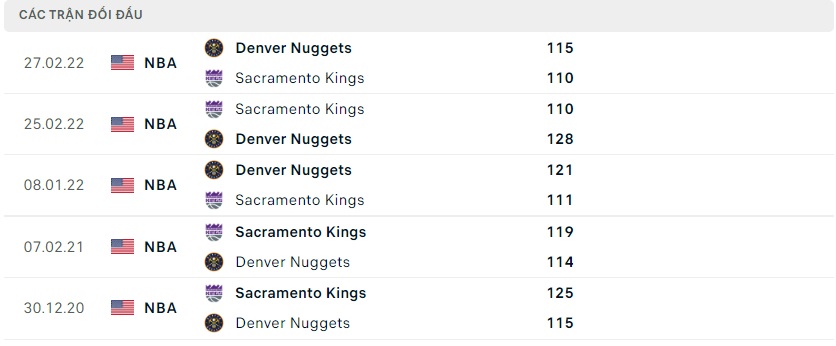 Lịch sử đối đầu Sacramento Kings vs Denver Nuggets