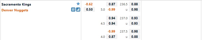 Bảng kèo Sacramento Kings vs Denver Nuggets