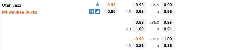 Bảng kèo Utah Jazz vs Milwaukee Bucks