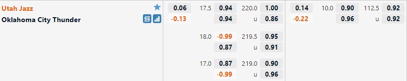 Bảng kèo Utah Jazz vs Oklahoma City Thunder