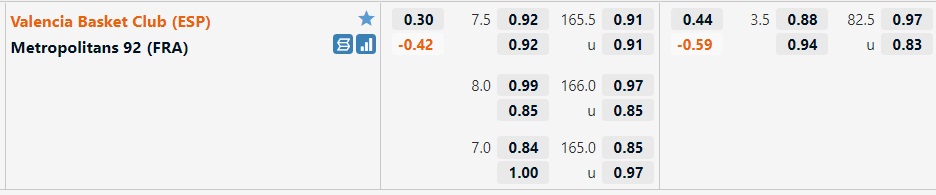 Valencia đang hiệu suất ghi điểm những trận sân nhà gần đây là 95 mỗi trận đấu, một con số có thể khiến bất cứ đối thủ nào trên hành trình chinh phạt của họ phải nể sợ. Về phía Metropolitans, những trận sân khách khoảng thời gian này thường chứng kiến số điểm mất cao của đại diện thành Paris. Trận đấu tới có thể sẽ hướng về kèo Tài, với những diễn biến sôi nổi tới phút cuối cùng.