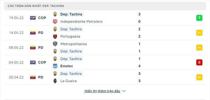 Trong khi đó, Deportivo Tachira với 2 chiến thắng, 1 trận hòa cùng 2 thất bại ở 5 lượt trận đã qua đang có 7 điểm và đứng ngay phía sau đội chủ nhà. Tuy nhiên khoảng cách 2 điểm với Sport Club Emelec cùng hiệu số bàn thắng bại -3 nói lên tấm vé vào vòng knock-out của đại diện Venezuela đang bị đe dọa nghiêm trọng. Không những thế phong độ trong thời gian gần đây của các học trò HLV Alexandre Pallares cũng là khá tệ với duy nhất 1 chiến thắng ở 5 trận gần nhất trên mọi đấu trường.
